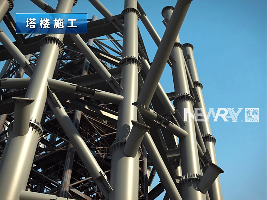 超高建筑、钢结构,施工技术分析,建设工作汇报动画