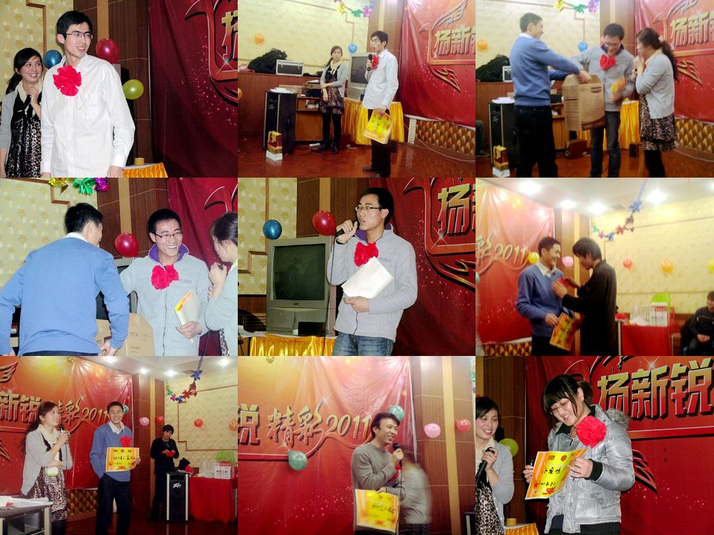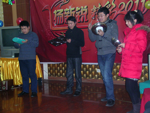 接下来的各种团队表演及即兴小游戏,也让大家玩得不亦乐乎。大家争先恐后,相互配合,平时协作工作的尽头被在一次用在了游戏中,几个节目下来,大家都是合不拢嘴,满载而归。平时生活中的大事小事,趣闻趣事,都被新锐的观察者们,拿来改编成了自己的节目。一次次成功后的欢呼,一次次失败后的努力,让大家更加团结在了一起,整个年会在浓浓的欢乐氛围中结束,2010年我们的所有工作得到了肯定,2011年,大家都在展望着新的成绩!